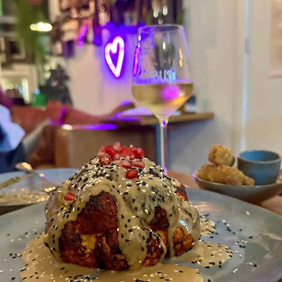 In Amsterdam's Oud-West, this restaurant serves Levantine dishes alongside a selection of natural wines. The menu is largely vegetarian and vegan: think labneh dips, panisse (chickpea fries) with vegan mayo, roasted almonds and molasses-glazed leeks with butter bean puree. Most bread dishes and sweets are also vegan or vegetarian. Sustainability and inclusivity are central to the company philosophy, with natural wines from underrepresented regions.